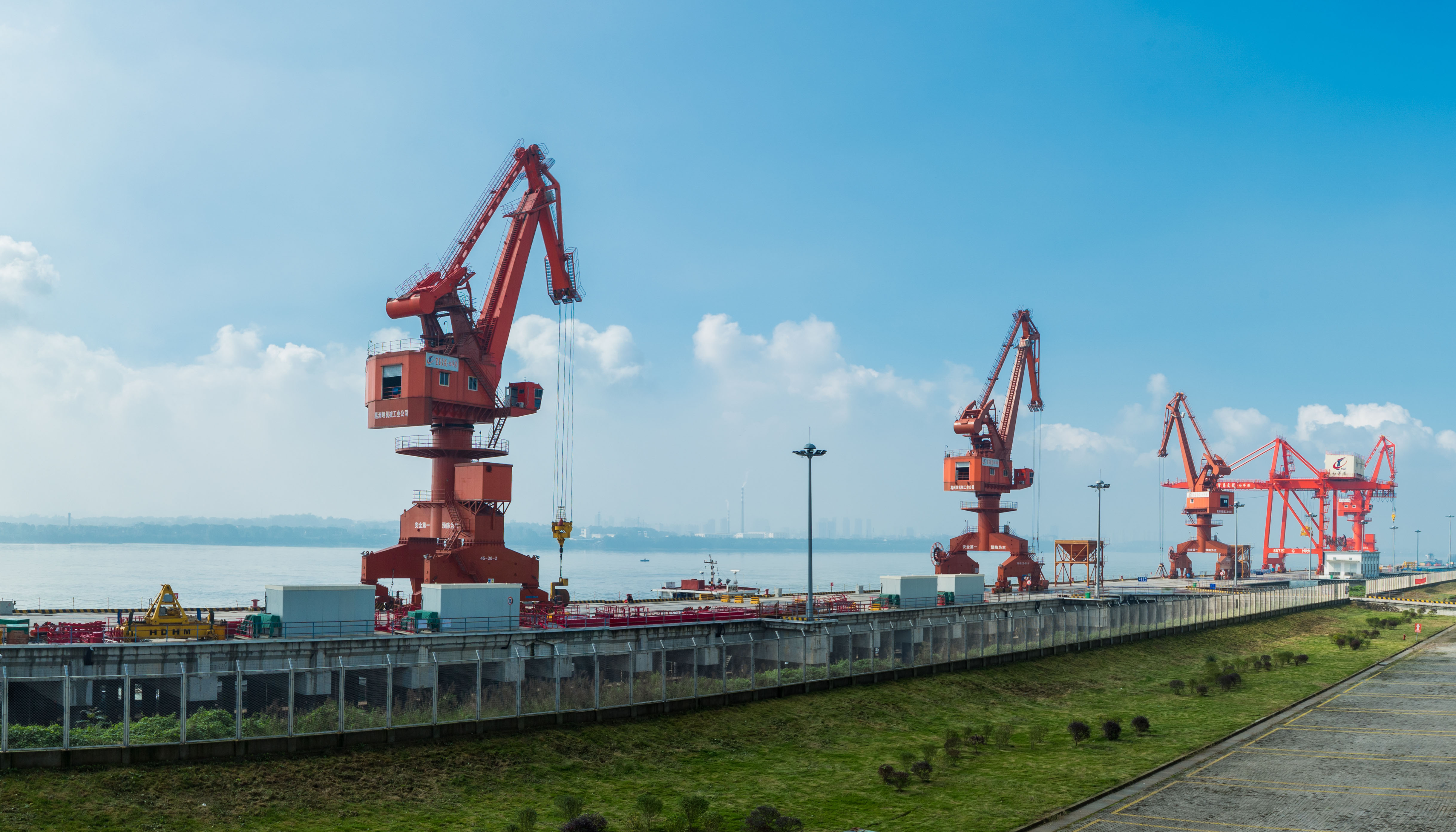 宜昌白洋港區(qū)碼頭工程。項(xiàng)目擬建泊位24個(gè),利用岸線2500米,陸域面積2平方公里,估算投資80億元,遠(yuǎn)期形成年吞吐能力2500萬噸、100萬標(biāo)箱和40萬輛商品車。其中:一期工程擬建6個(gè)3000噸級(jí)泊位(水工結(jié)構(gòu)兼顧5000噸級(jí)),使用岸線624米,陸域面積516畝,概算投資8.18億元。項(xiàng)目2012年10月開工建設(shè)。